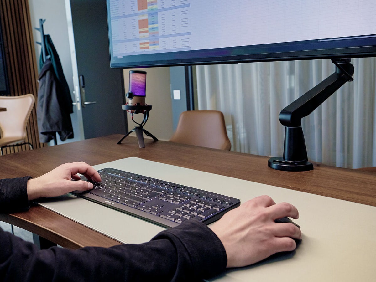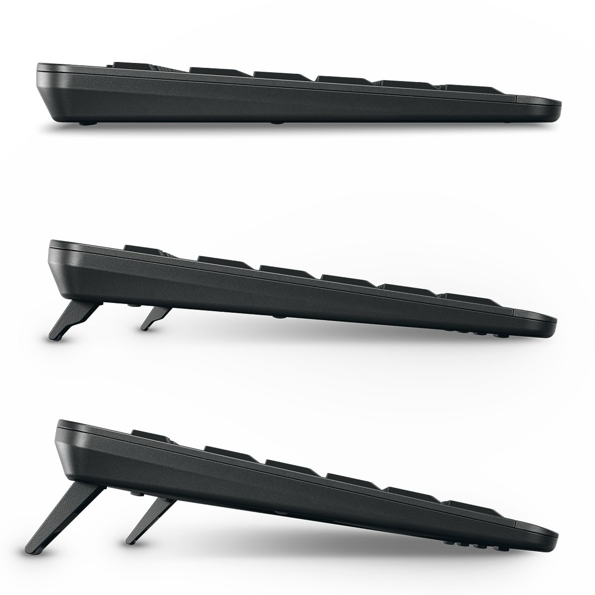 Drei Neigungswinkel lassen sich einstellen, nämlich 0, 4 und 8 Grad. Eine Metallplatte und gummierte Füße sollen für Stabilität sorgen. Acht Hotkeys für Medien und Office-Funktionen sind vorhanden, außerdem gibt es eine Co-Pilot-Taste für KI-Funktionen. Der Akku soll mit einer Ladung bis zu fünf Monate durchhalten. Das Set CHERRY STREAM DESKTOP ULTIMATE ist für 199,99 Euro erhältlich. Wer nur die Tastatur will, zahlt 119,99 Euro, die Maus allein kostet 99,99 Euro.